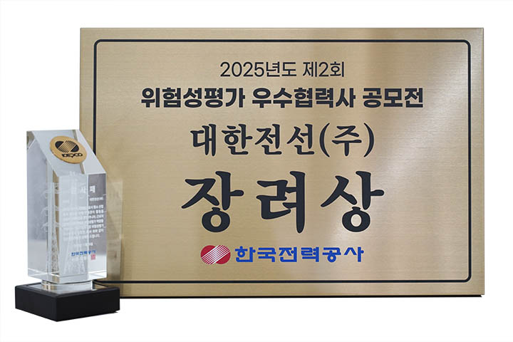 대한전선이 한국전력공사(KEPCO)가 주최한 「위험성 평가 우수 협력사 공모전」에서 장려상을 수상했습니다.